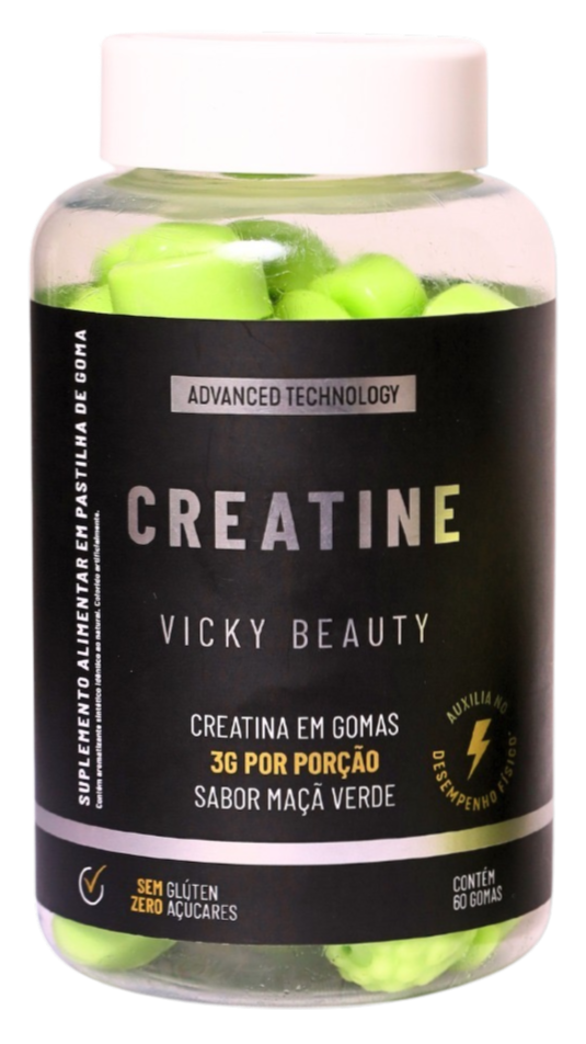 Esqueça as gomas comuns que você já viu por aí. A Creatina Vicky Beauty, é feita com tecnologia e selo de pureza comprovado para te dar energia, foco e força de verdade.