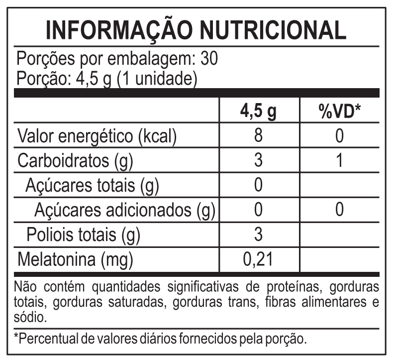 Com tecnologia de liberação imediata e melatonina em dose funcional (0,21 mg), a absorção acontece rapidamente, ajudando você a pegar no sono de forma natural, sem causar sonolência ao acordar.